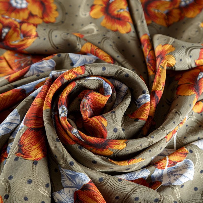 Шелк натуральный К18-060 оливковый жаккардовый в Нарьян-Маре
