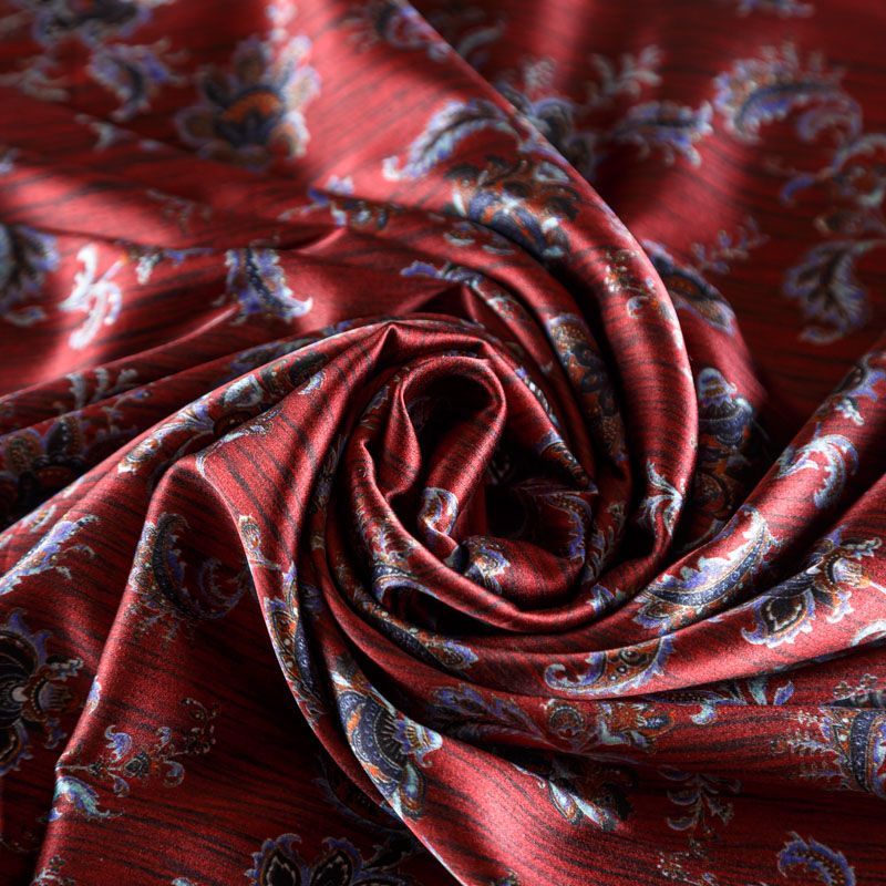 Шелк натуральный К24-022 гранатовый принтованный в Нарьян-Маре