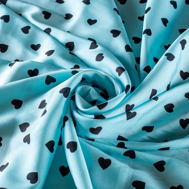 Итальянский креповый шелк с романтическим принтом на мятно-голубом фоне. Ткань тонкая, не просвечивает, отлично драпируется, легкая и струящаяся. Идеально подойдет для пошива платьев и сарафанов расклешенных моделей, с воланами, летящих юбок, топов, блузки, костюма в пижамном стиле.