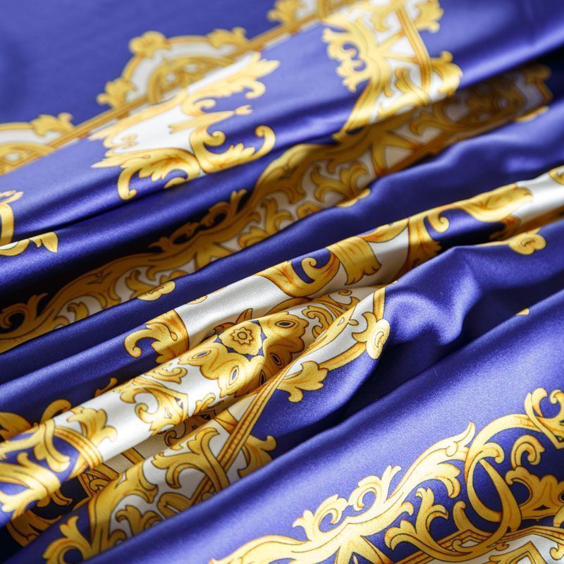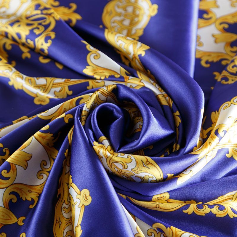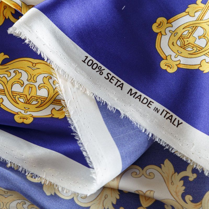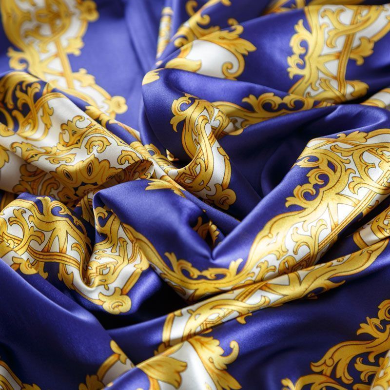 Шелк натуральный К2-309 синий принтованный