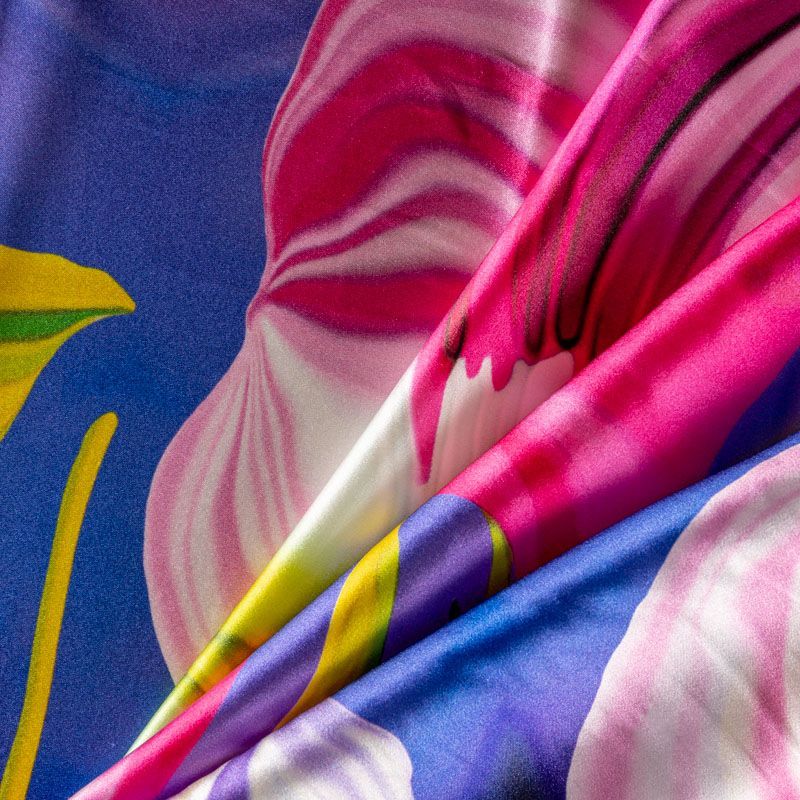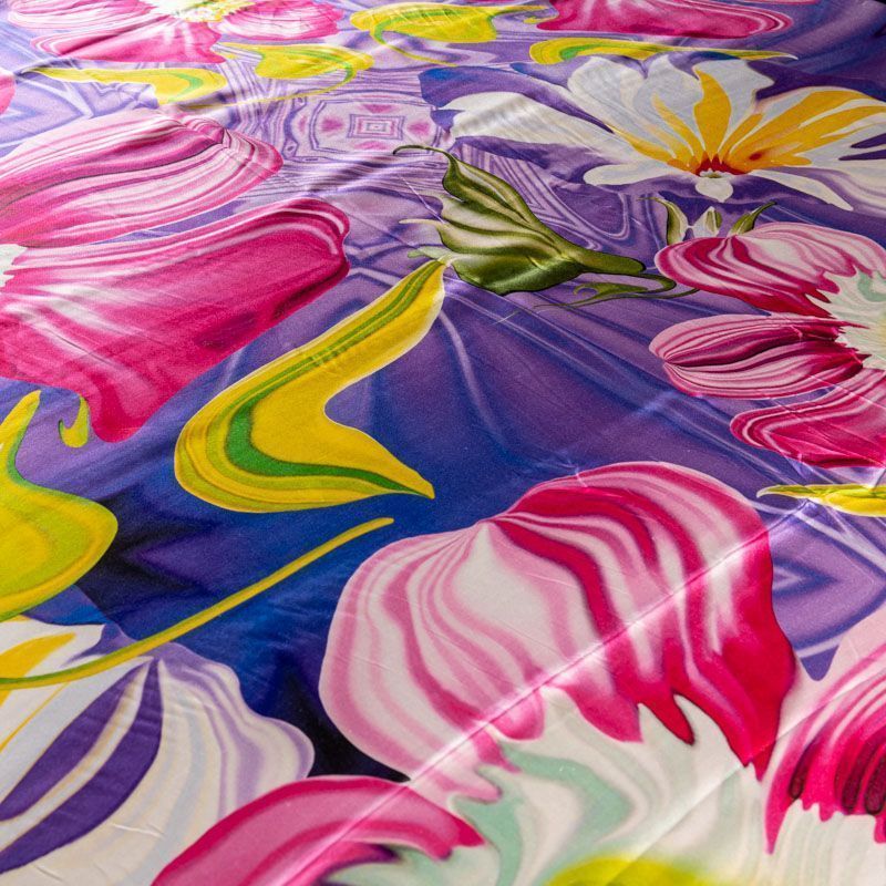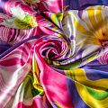 Итальянский атласный шелк с акварельным цветочным принтом на лавандовом фоне, тонкий, отлично драпируется, легкий. Идеально подойдет для пошива платьев и сарафанов расклешенных моделей, с воланами, рюшами, летящих юбок, топов, блузки, рубашки, костюма в пижамном стиле.