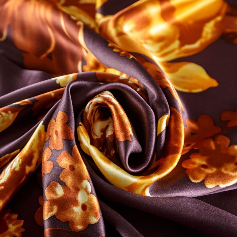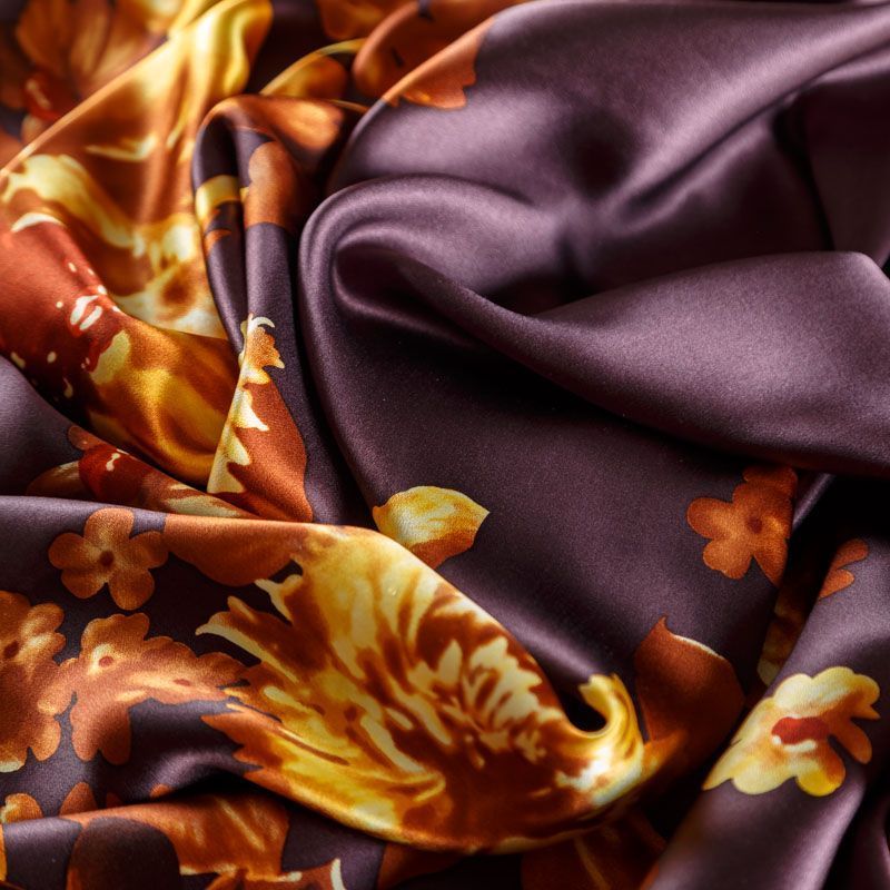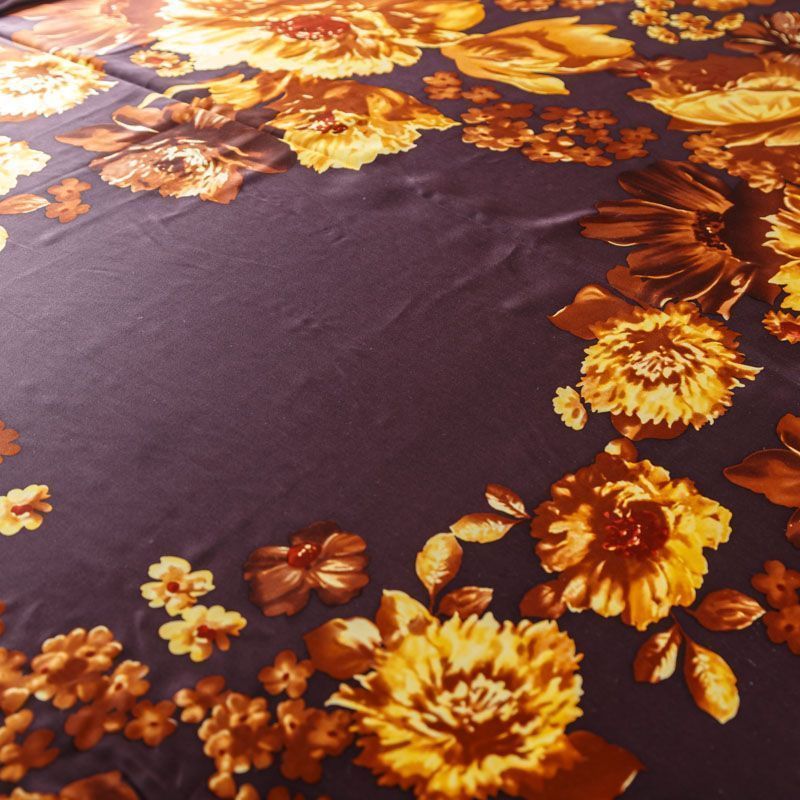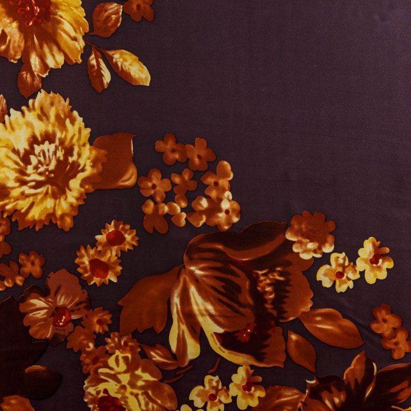 Итальянский атласный шелк с красивым цветочным принтом. Ткань средней плотности, не просвечивает, струится, хорошо драпируется. Поверхность глядкая, имеет благородный сатиновый блеск. Подойдет смелых образов: летних платьев и сарафанов, как летящих фасонов, так и скроенных по косой, накидок, юбок, блузок, костюмов, широких брюк, домашней одежды.