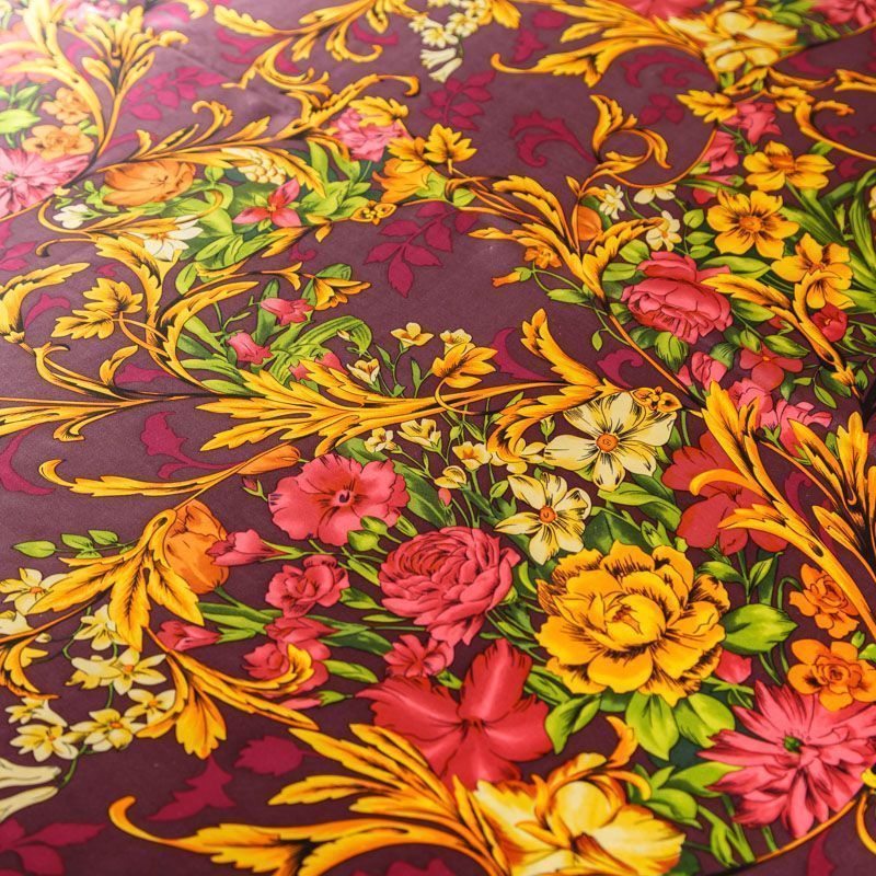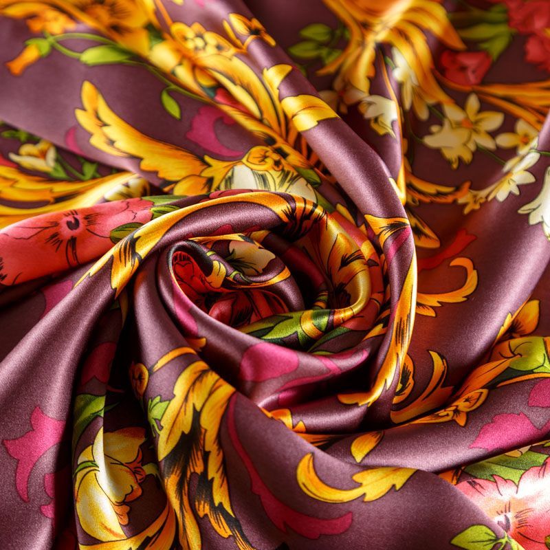 Итальянский атласный шелк с красивым принтом. Ткань средней плотности, не просвечивает, струится, хорошо драпируется. Поверхность глядкая, имеет благородный сатиновый блеск. Подойдет смелых образов: летних платьев и сарафанов, как летящих фасонов, так и скроенных по косой, накидок, юбок, блузок, костюмов, широких брюк, домашней одежды.
