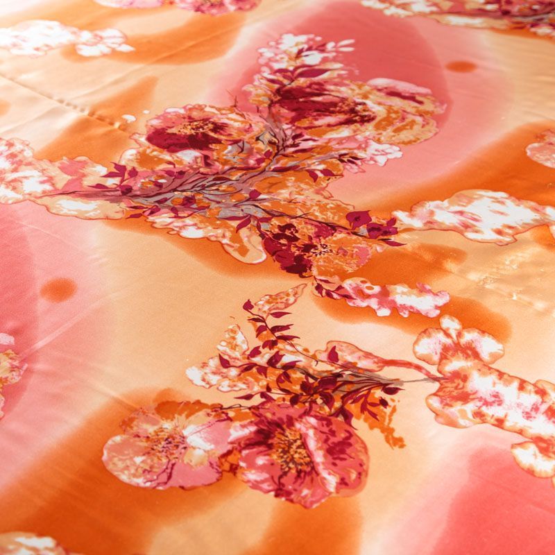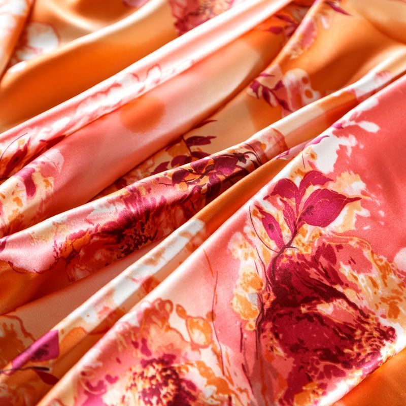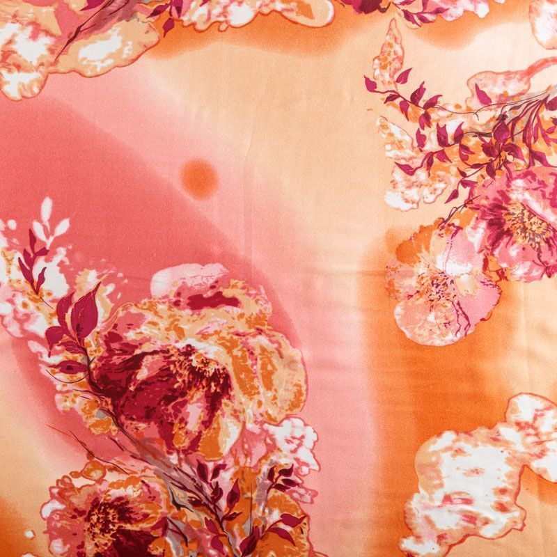Итальянский атласный шелк с цветочным принтом. Ткань средней плотности, не просвечивает, струится, хорошо драпируется. Поверхность глядкая, имеет благородный сатиновый блеск. Подойдет смелых образов: летних платьев и сарафанов, как летящих фасонов, так и скроенных по косой, накидок, юбок, блузок, костюмов, широких брюк, домашней одежды.