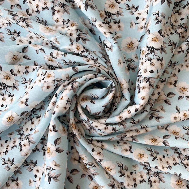 Шелк натуральный К32-151 нежно-голубой принтованный
