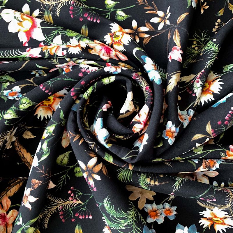 Шелк натуральный К32-158 черный принтованный в Нарьян-Маре