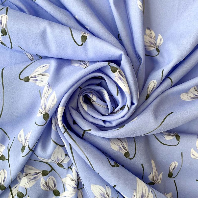 Шелк натуральный К32-168 небесно-голубой принтованный в Нарьян-Маре