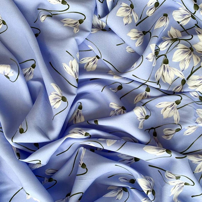 Креповая матовая поверхность, хорошо драпируется и тянется, подснежники.