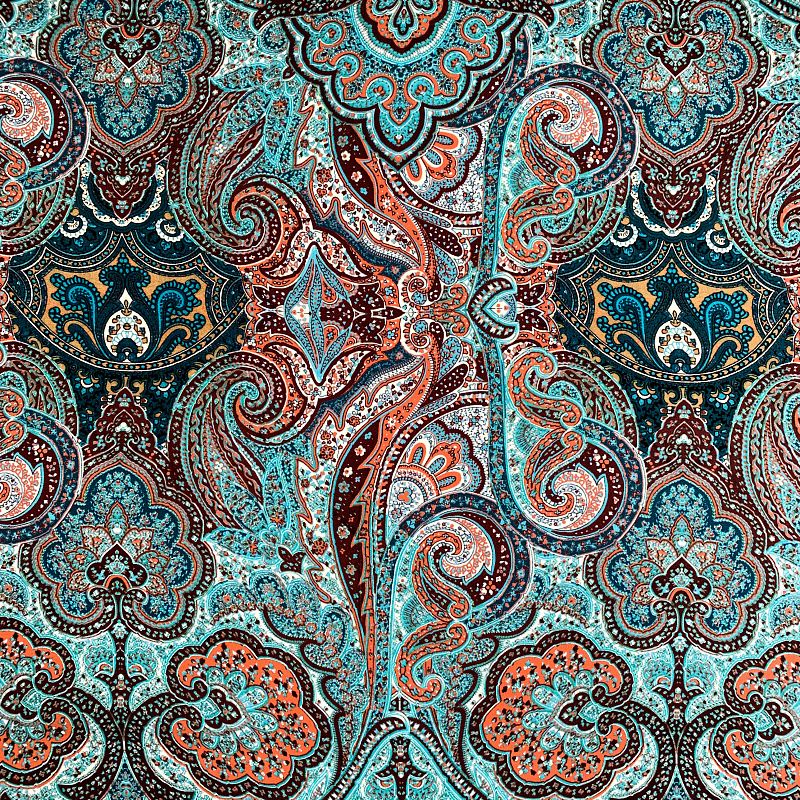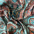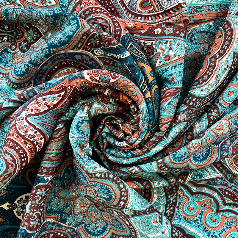 Шелк натуральный К32-242 бирюзово-коричневый принтованный в Нарьян-Маре
