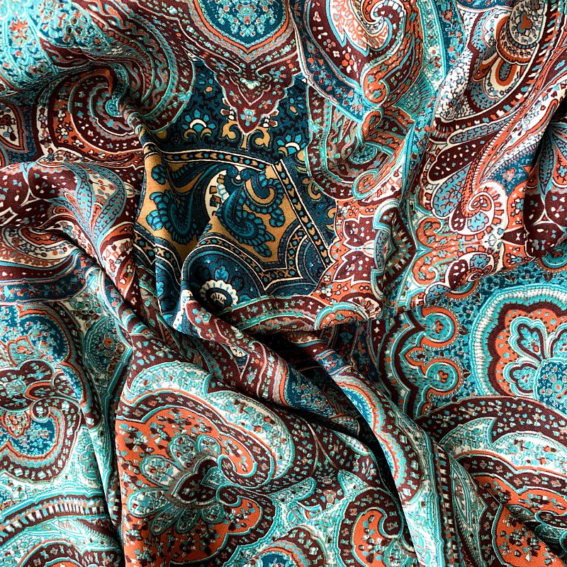 Шелк натуральный К32-242 бирюзово-коричневый принтованный