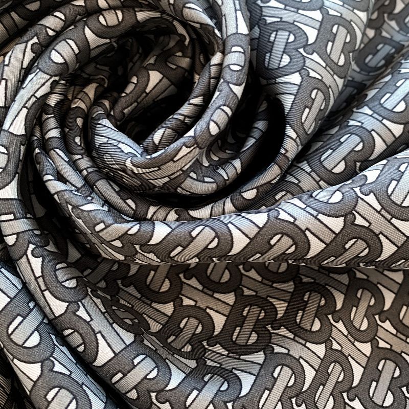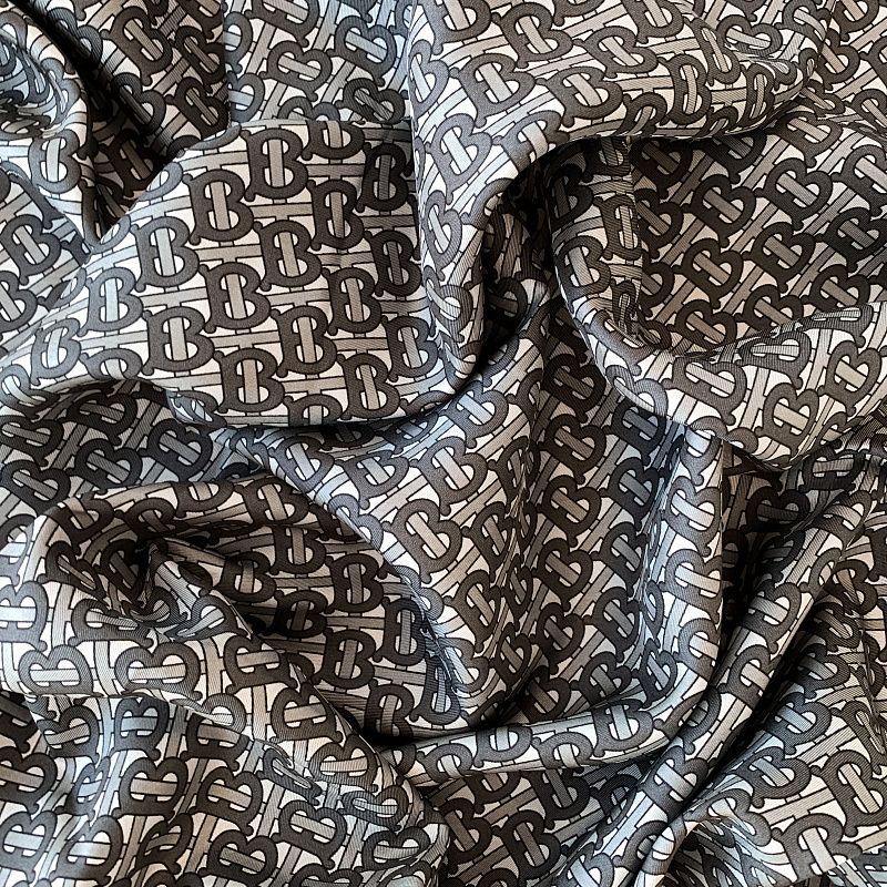 Шелк натуральный К32-505 серебристо-серый принтованный