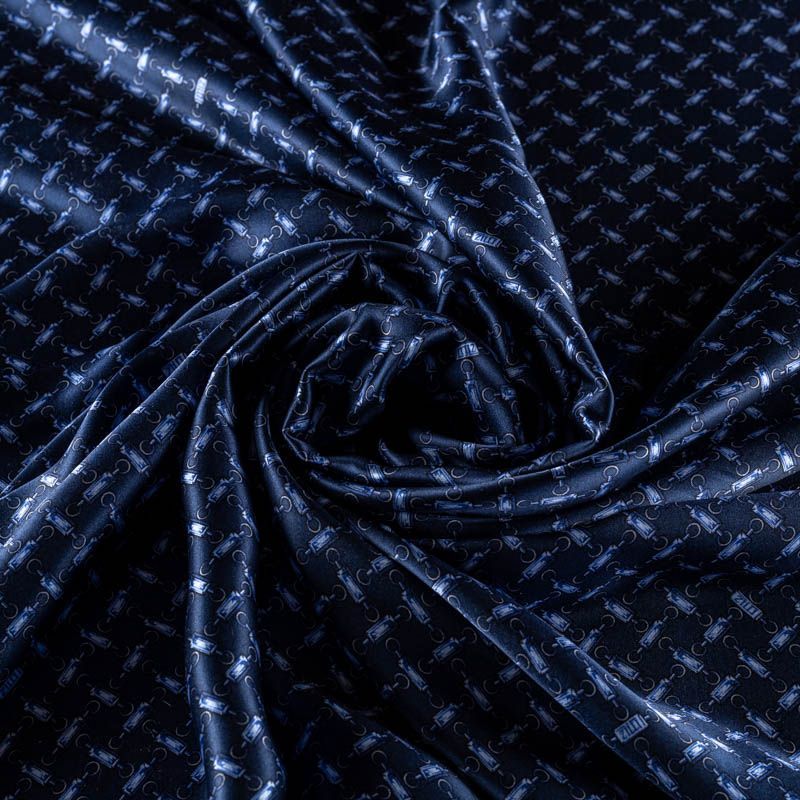 Шелк натуральный К36-244 темно-синий принтованный