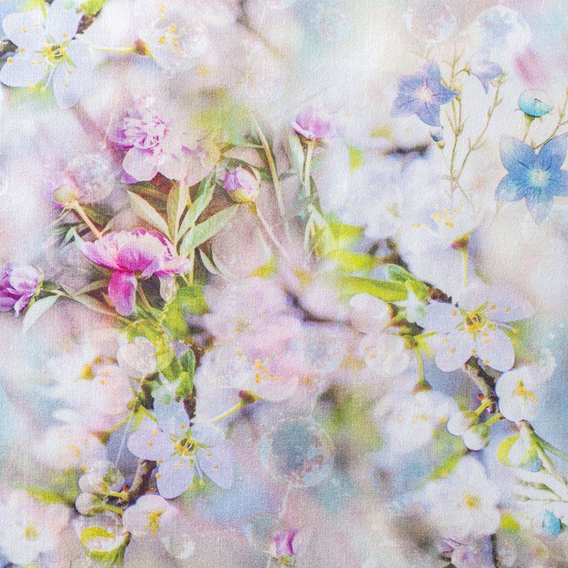 Плательно-блузочный штапель с добавлением шелка с флористическим принтом. Ткань очень мягкая, нежная, пластичная, шелковистая на ощупь, хорошо драпируется, практичная. Особенно актуальна летом, шелк-штапель очень легкий, обволакивающий прохладой. Идеален для пошива летней детской одежды, сарафанов, платьев, юбок, блузок, домашней одежды: халатов, ночной пижамы.