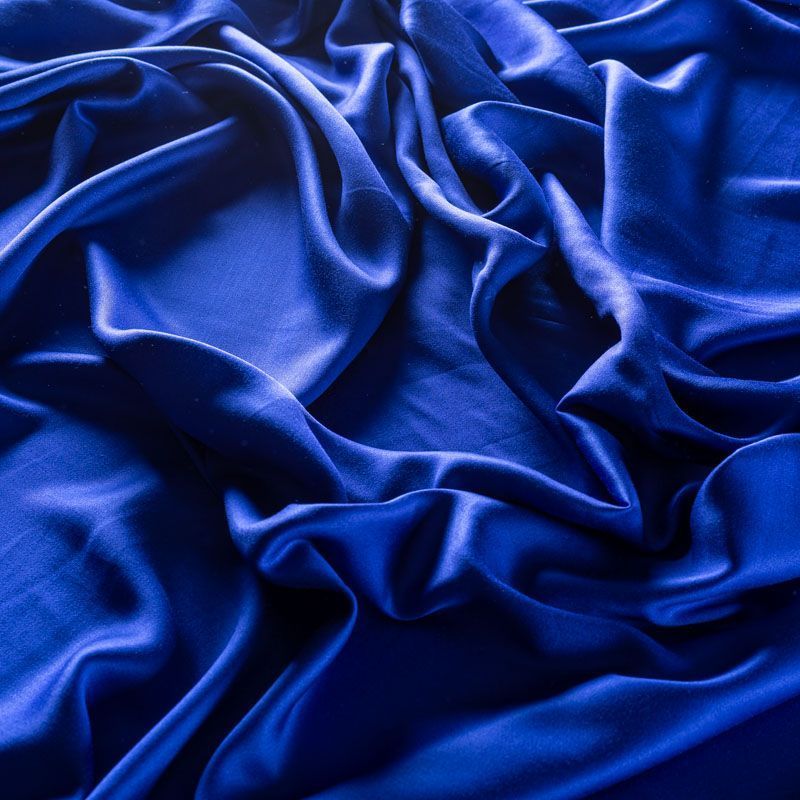 Плательно-блузочный штапель с добавлением шелка синего оттенка. Мягкий, нежный, пластичный, шелковистый на ощупь, хорошо драпируется, практичный. Особенно актуален летом, он очень легкий, обволакивающий прохладой. Идеален для пошива летней детской одежды, сарафанов, платьев, юбок, блузок, домашней одежды: халатов, ночной пижамы.