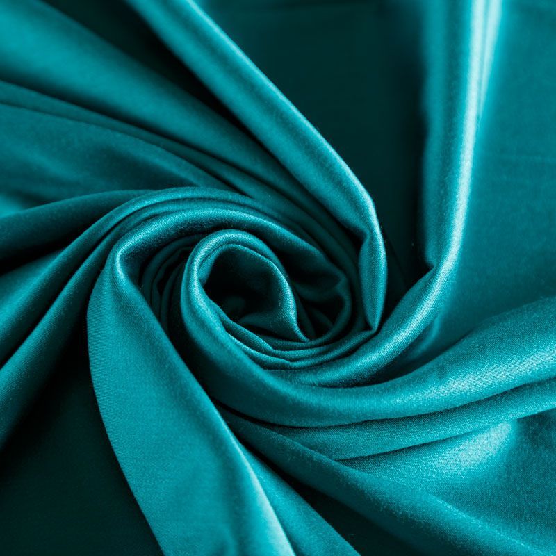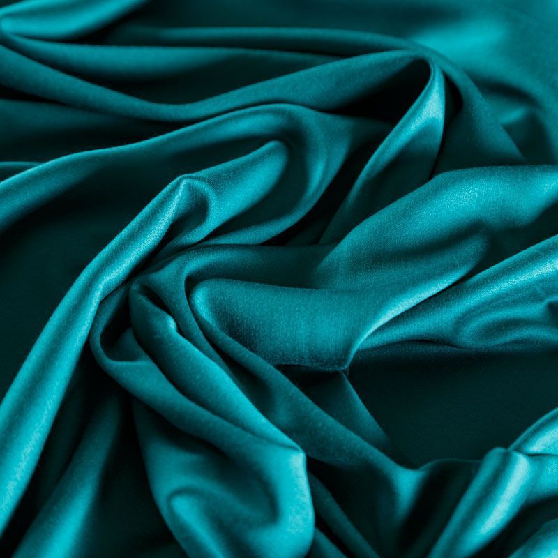 Плательно-блузочный штапель с добавлением шелка в изумрудном оттенке. Мягкий, нежный, пластичный, шелковистый на ощупь, хорошо драпируется, практичный, тянется за счет эластана в составе. Особенно актуален летом, он очень легкий, обволакивающий прохладой. Идеален для пошива летней детской одежды, сарафанов, платьев, юбок, блузок, домашней одежды: халатов, ночной пижамы.