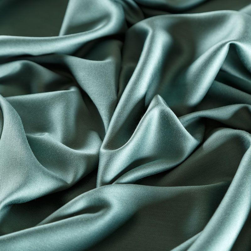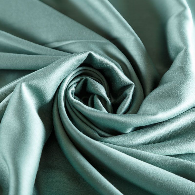 Плательно-блузочный штапель с добавлением шелка в мятно-бирюзовом оттенке. Мягкий, нежный, пластичный, шелковистый на ощупь, хорошо драпируется, практичный, тянется за счет эластана в составе. Особенно актуален летом, он очень легкий, обволакивающий прохладой. Идеален для пошива летней детской одежды, сарафанов, платьев, юбок, блузок, домашней одежды: халатов, ночной пижамы.