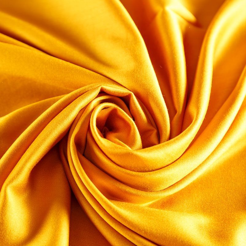 Плательно-блузочный штапель с добавлением шелка в желтом оттенке. Мягкий, нежный, пластичный, шелковистый на ощупь, хорошо драпируется, практичный, тянется за счет эластана в составе. Особенно актуален летом, он очень легкий, обволакивающий прохладой. Идеален для пошива летней детской одежды, сарафанов, платьев, юбок, блузок, домашней одежды: халатов, ночной пижамы.