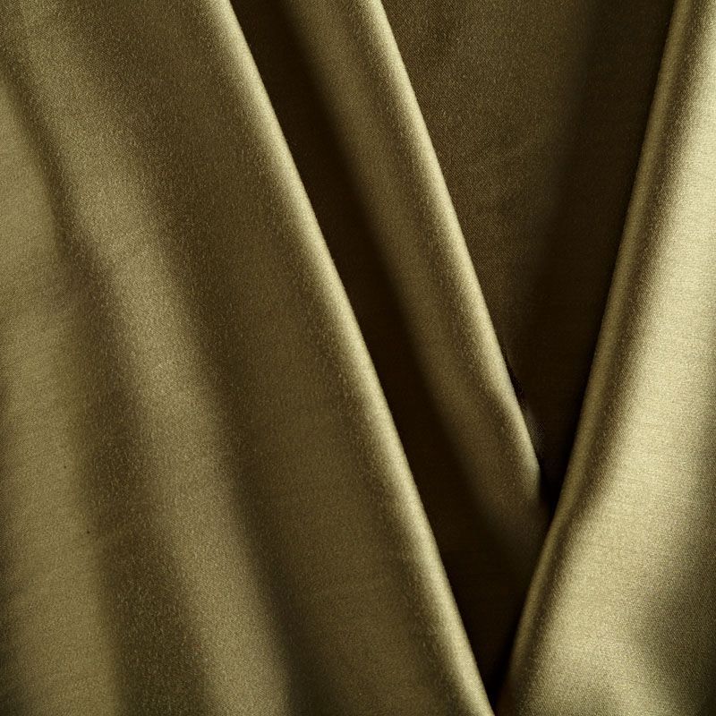 Плательно-блузочный штапель с добавлением шелка в оливково-зеленом оттенке. Мягкий, нежный, пластичный, шелковистый на ощупь, хорошо драпируется, практичный, тянется за счет эластана в составе. Особенно актуален летом, он очень легкий, обволакивающий прохладой. Идеален для пошива летней детской одежды, сарафанов, платьев, юбок, блузок, домашней одежды: халатов, ночной пижамы.