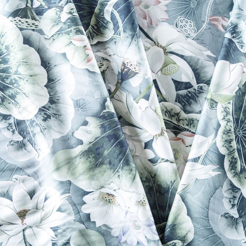Шелк-штапель 069-08025 серо-зеленый принтованный