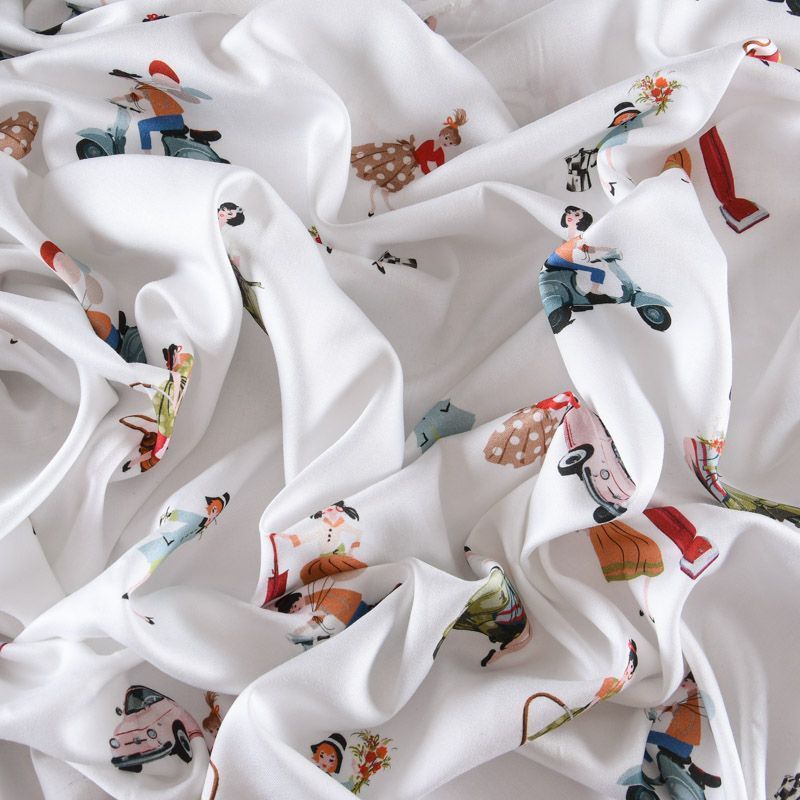 Шелк-штапель 069-11730 белый принтованный