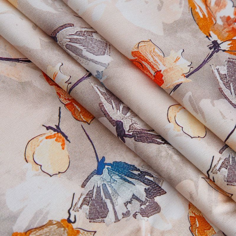 Шелк-штапель 069-17421 бежево-серый принтованный