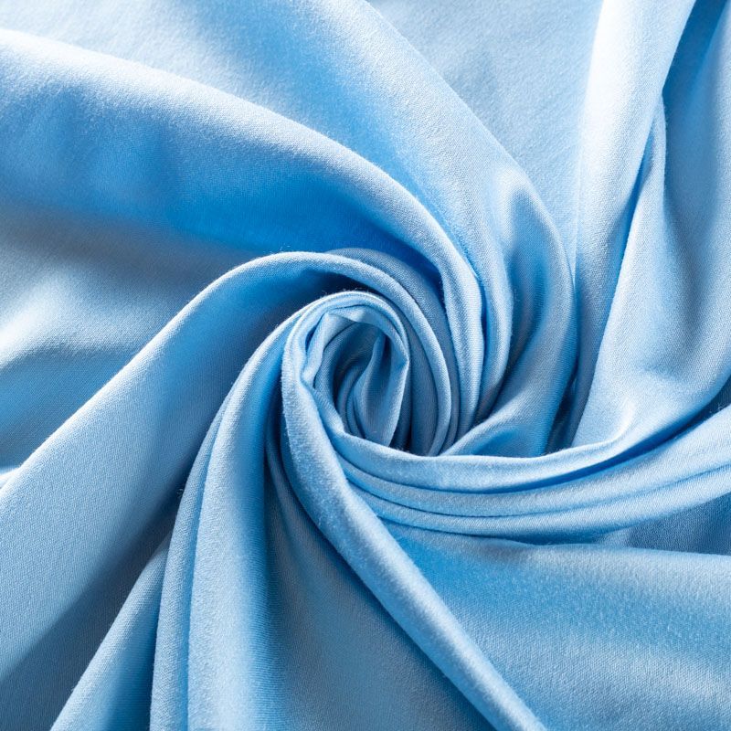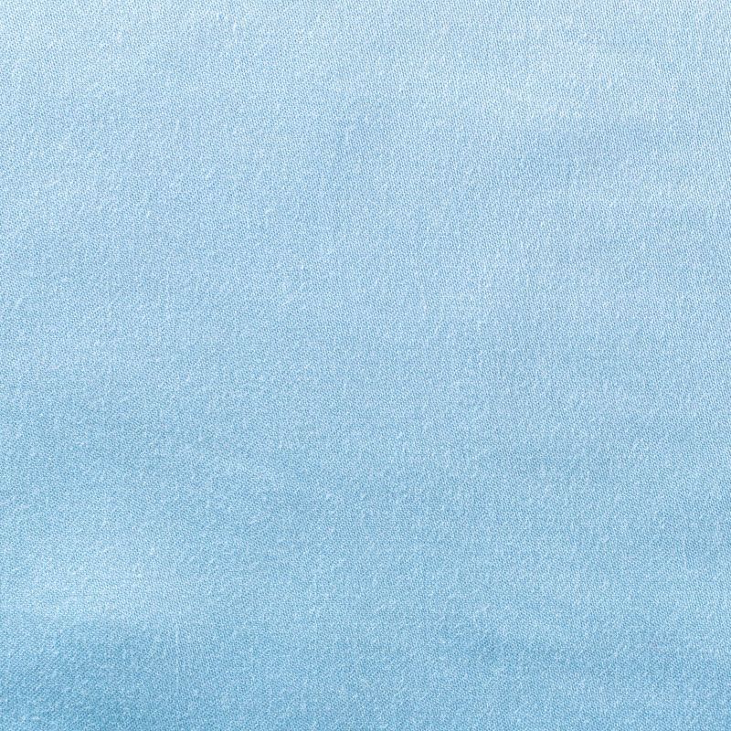 Плательно-блузочный штапель с добавлением шелка голубого оттенка. Мягкий, нежный, пластичный, шелковистый на ощупь, хорошо драпируется, тянется за счет эластана в составе. Особенно актуален летом, он очень легкий, обволакивающий прохладой. Идеален для пошива летней детской одежды, сарафанов, платьев, юбок, блузок, домашней одежды: халатов, ночной пижамы.