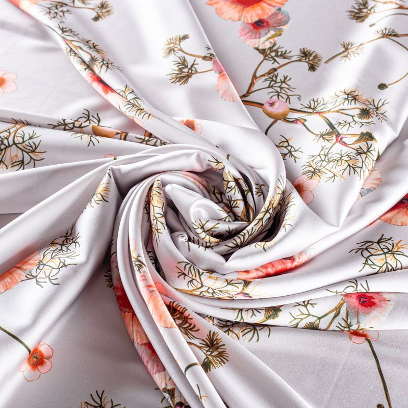 Тонкая, легкая, струящаяся ткань, не просвечивает, очень нежная и прятная к телу, обладает благородным атласным блеском, хорошо драпируется, не тянется. Идеально подойдет для пошива блузок, платьев и юбок, а также топов, платков, домашней одежды.