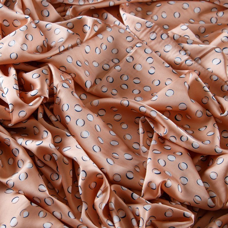 Шелк синтетический 065-13573 персиковый принтованный в Нарьян-Маре
