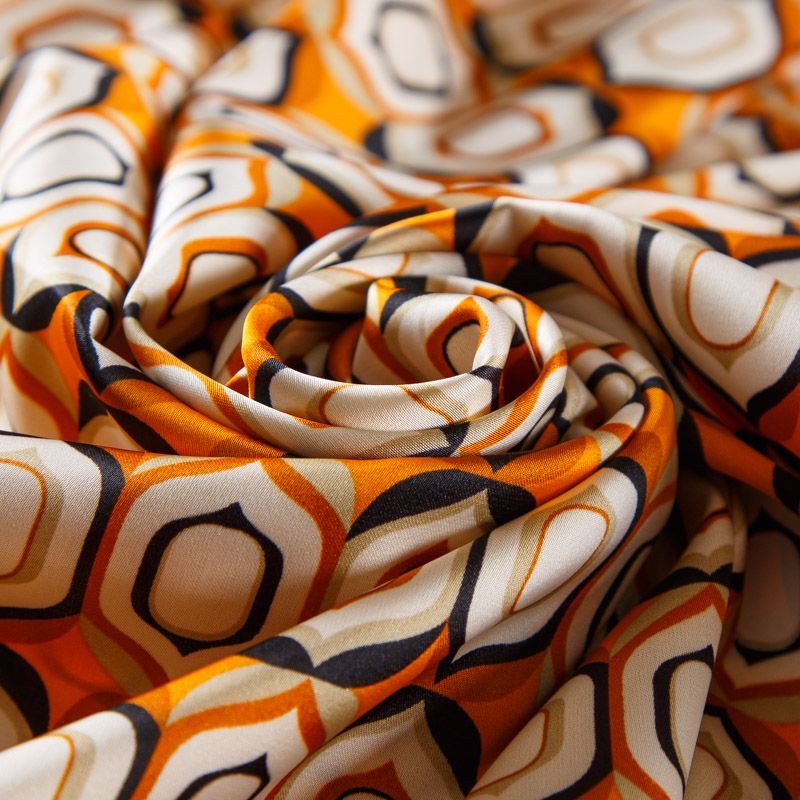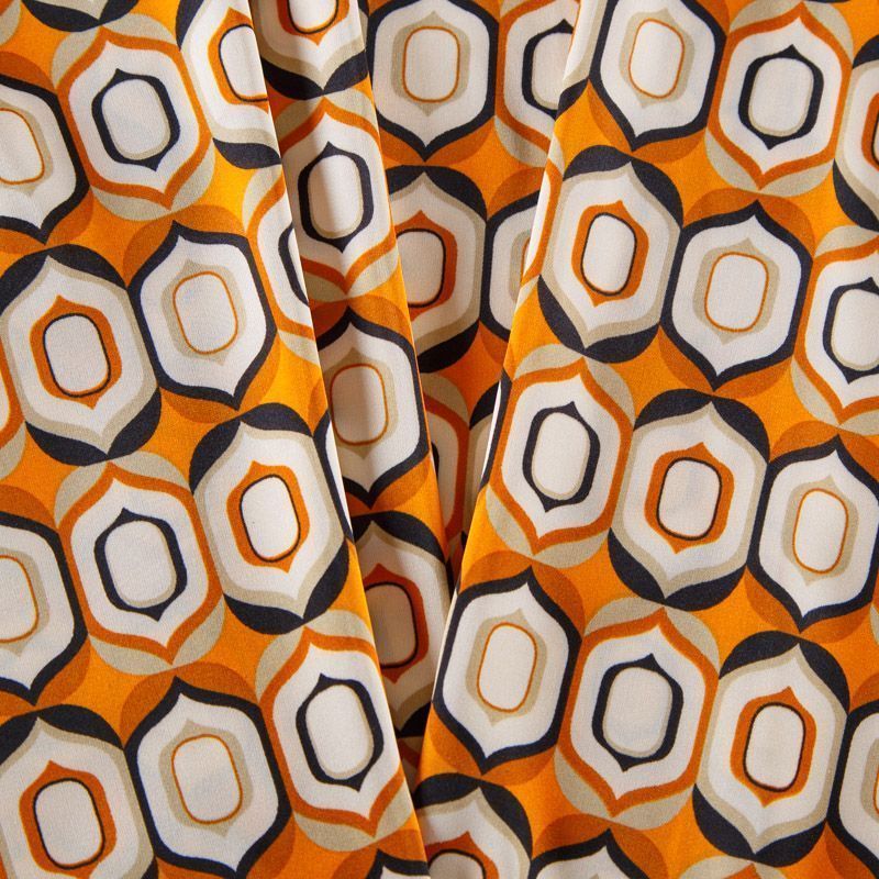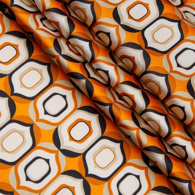 Шелк синтетический 065-13789 апельсиновый принтованный в Нарьян-Маре