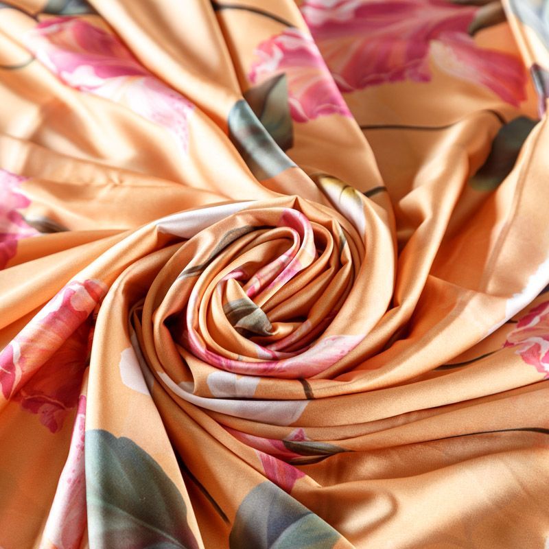 Шелк синтетический К33-040 абрикосовый принтованный в Нарьян-Маре