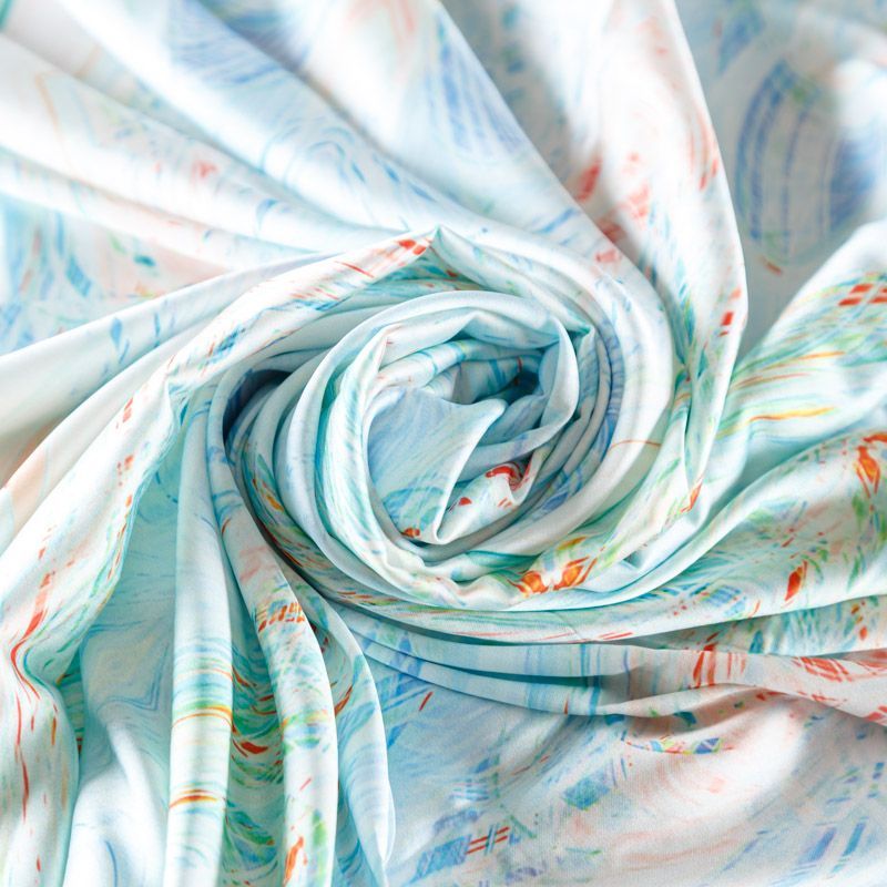 Тонкая, легкая, струящаяся ткань, не просвечивает, очень нежная и прятная к телу, обладает благородным атласным блеском, хорошо драпируется, тянется за счет эластана в составе. Идеально подойдет для пошива блузок, платьев и юбок, а также топов, платков, домашней одежды.