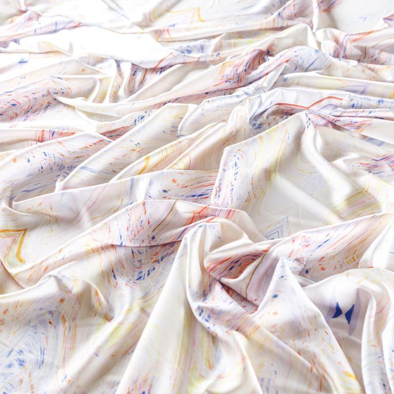Шелк синтетический К33-049 молочный принтованный в Нарьян-Маре