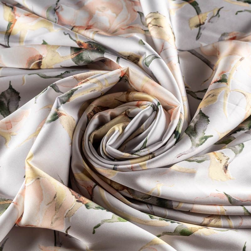 Тонкий и легкий, не просвечивает, струящийся, очень нежный, приятный к телу, обладает благородным атласным блеском, хорошо драпируется. Идеально подойдет для пошива блузок, платьев и юбок, а также топов, платков, домашней одежды.