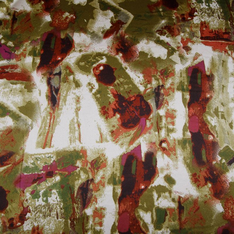 Шелк синтетический стрейч 065-17546 оливковый принтованный
