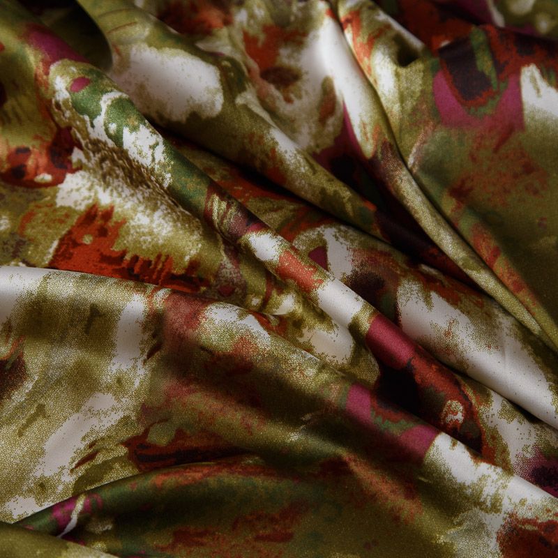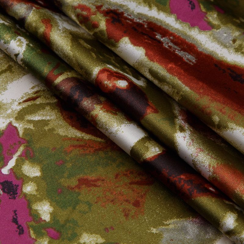 Шелк синтетический стрейч 065-17546 оливковый принтованный в Нарьян-Маре