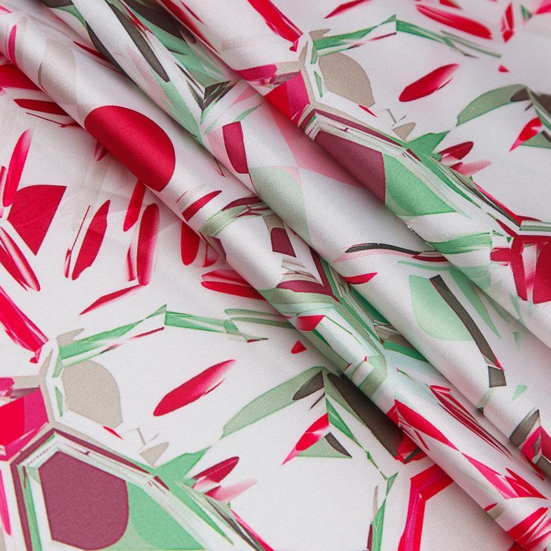 Шелк синтетический стрейч 065-17630 белый принтованный в Нарьян-Маре