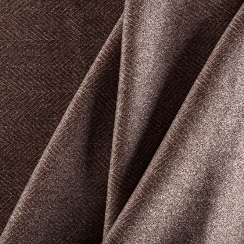 Итальянский потрясающий твид в ёлочку в бежево-коричневом оттенке с холодным подтоном. Шерсть выглядит дорого и статусно. Ткань хорошей плотности, в меру тяжёлая, пластичная, не мнется, приятная на ощупь, при драпировке образует красивую округлую складку. Подойдёт для пошива жакета, юбки, брюк, платья, легкого пальто, бомбера, мужского костюма или пальто.