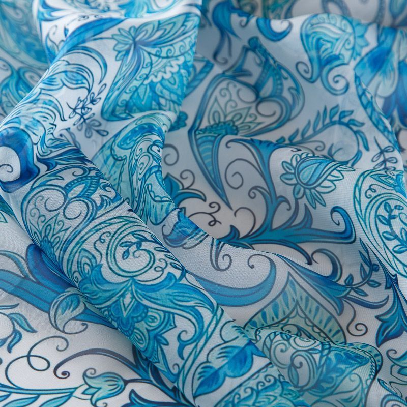 Шифон 068-17373 лазурно-голубой принтованный в Нарьян-Маре