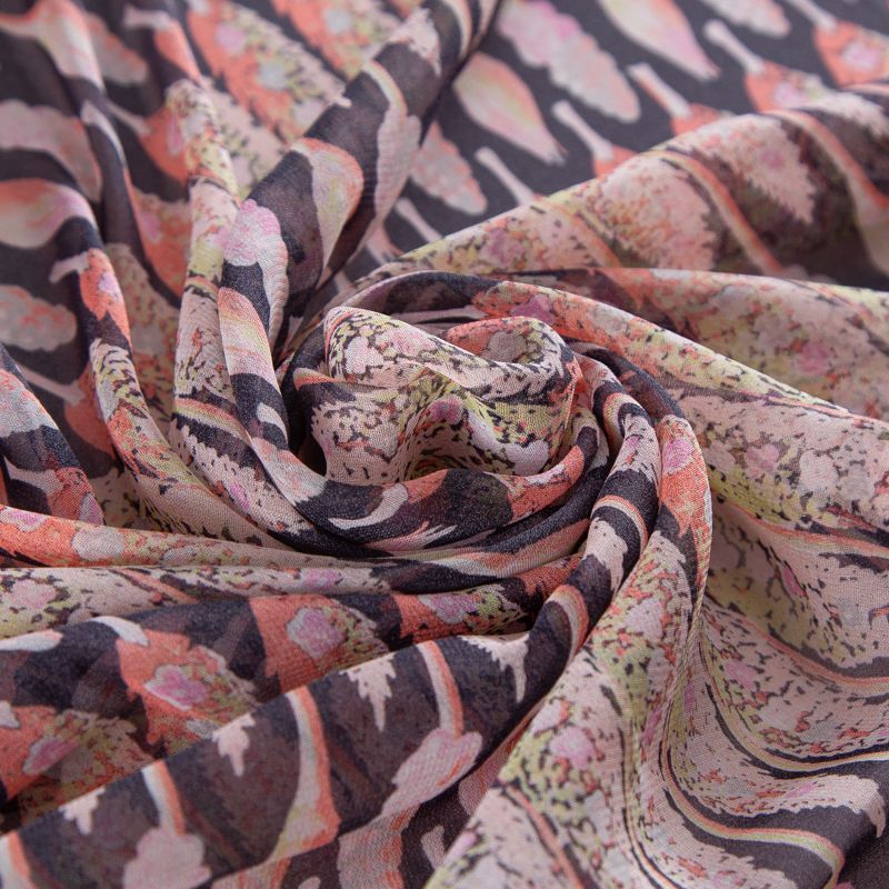 Шифон шелковый 027-20195 черный мультиколор