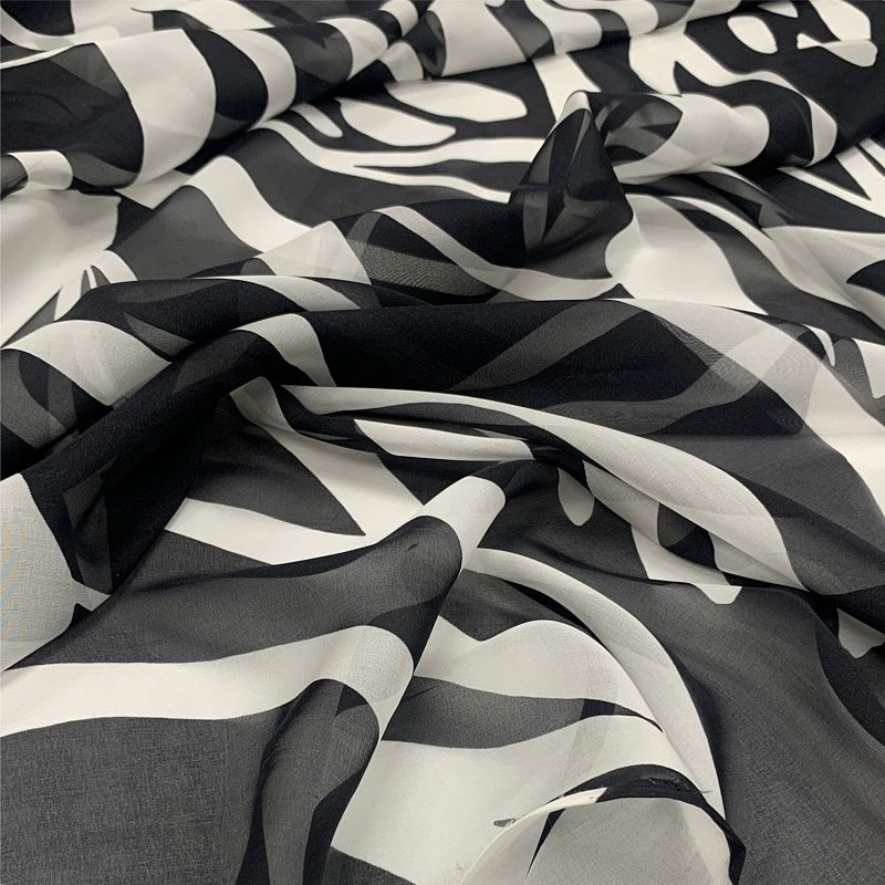 Шифон шелковый 068-11796 черный принтованный