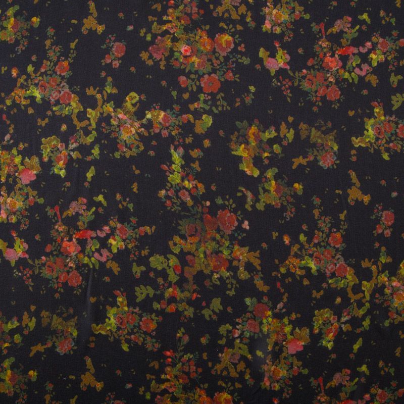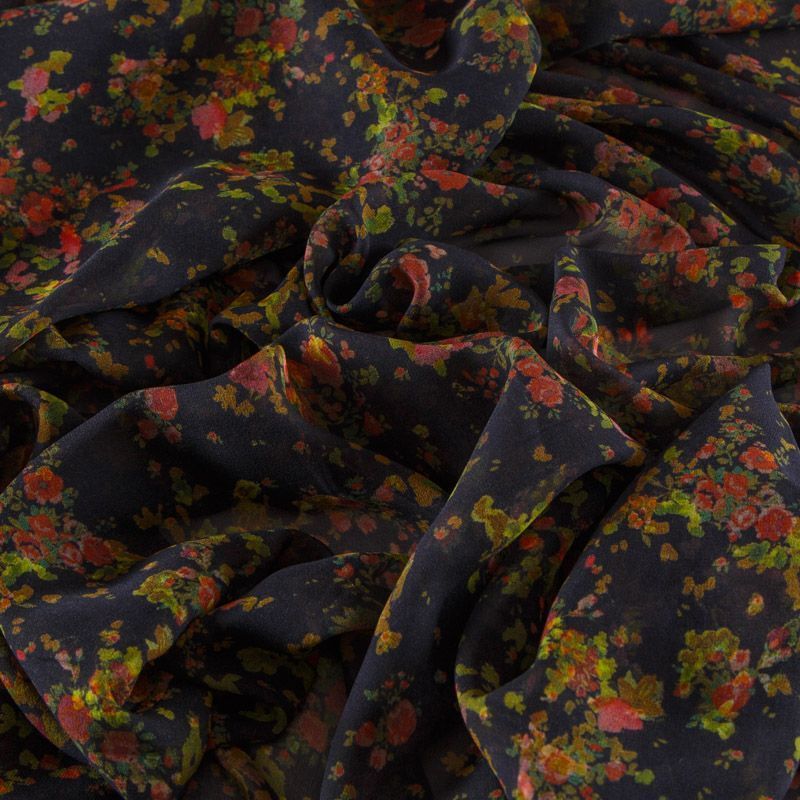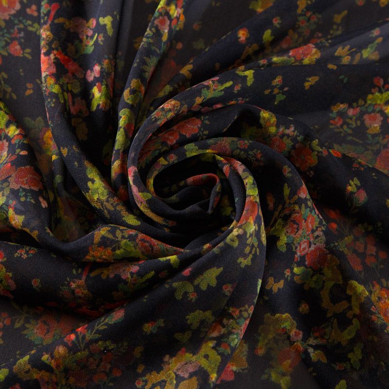 Шифон шелковый 068-12256 черный принтованный в Нарьян-Маре