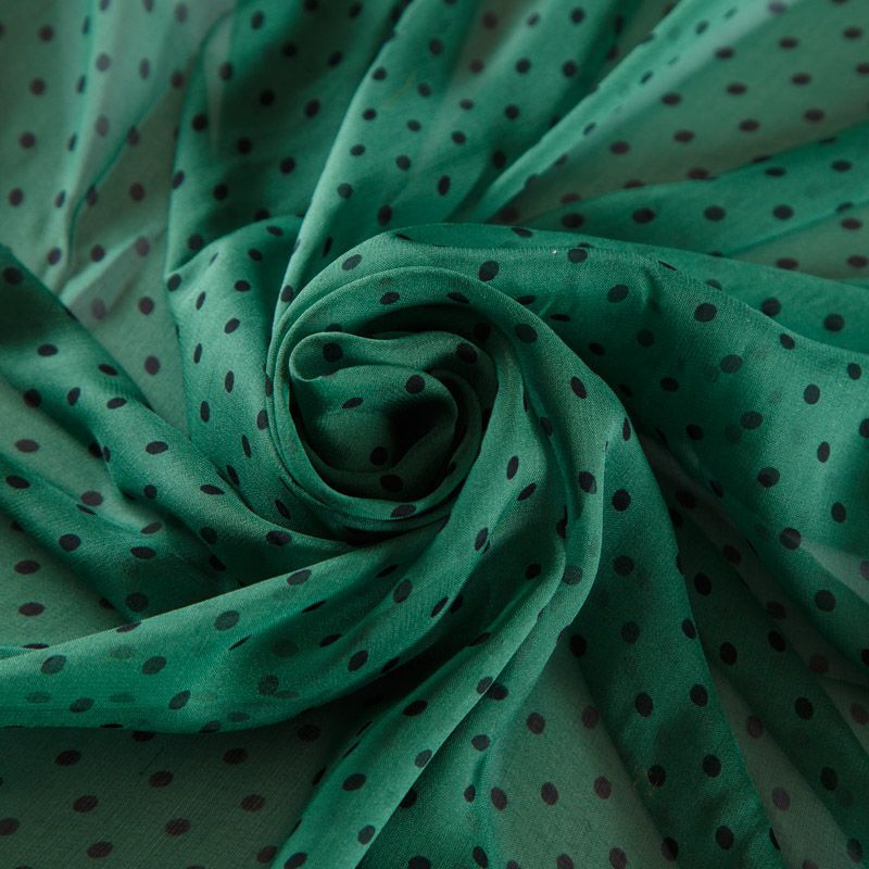 Шифон шелковый 068-12257 зеленый принтованный