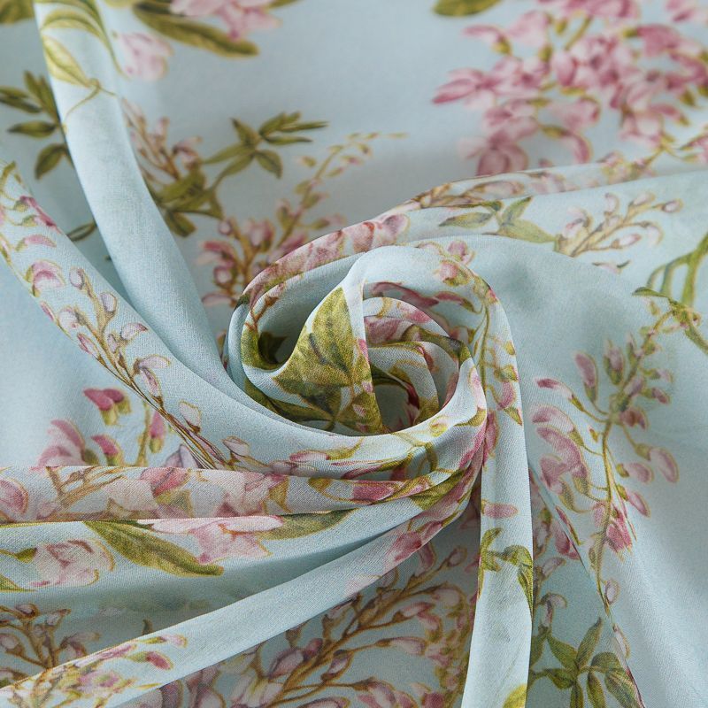 Шифон шелковый 068-19105 разбеленный голубой принтованный