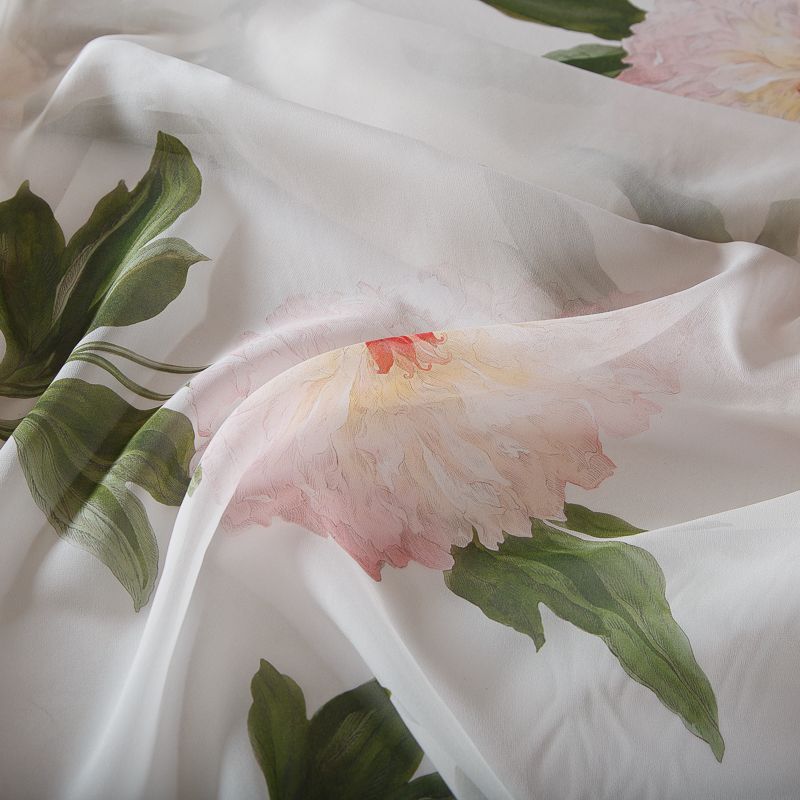 Шифон шелковый 068-19106 белый принтованный в Нарьян-Маре