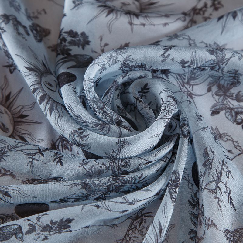 Шифон шелковый 068-19175 голубой принтованный