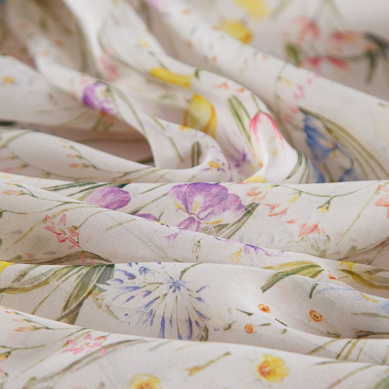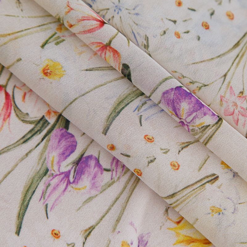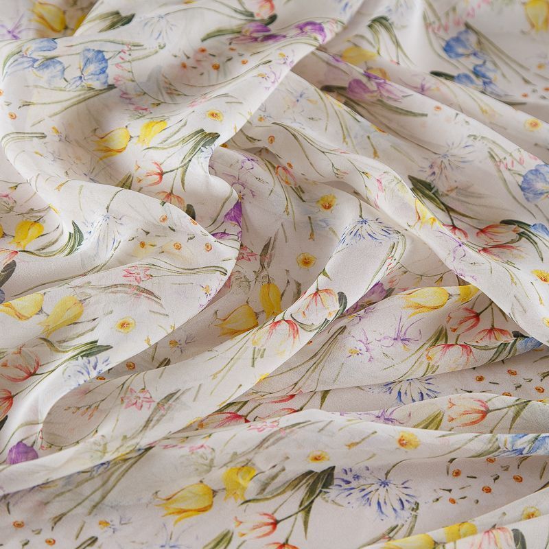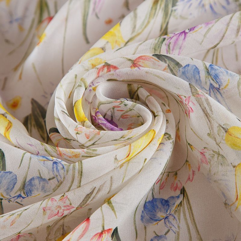 Шифон шелковый 068-19177 молочный принтованный в Нарьян-Маре