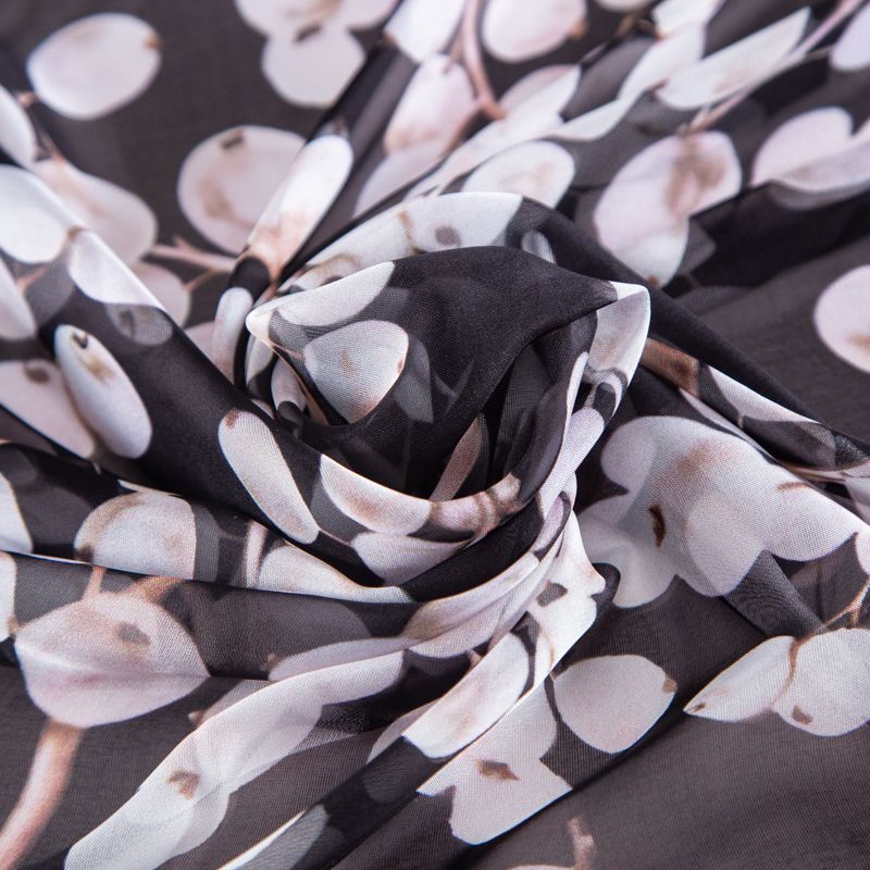 Шифон шелковый 068-20075 черный принтованный