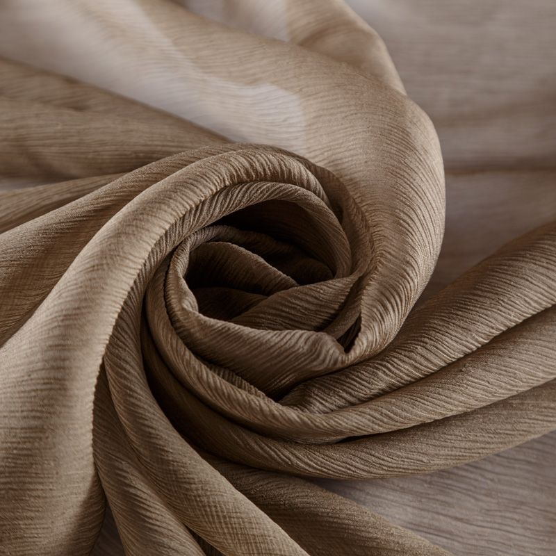 Воздушная шелковая жатая ткань, легкая, тонкая, полупрозрачная. На ощупь шифон-жатка очень мягкий и приятный, не тянется. Подойдет для пошива тончайших воздушных блуз, изумительных вечерних и летних платьев в пол, коротких коктейльных платьев, топов, блузок, туник и элегантных шарфов.