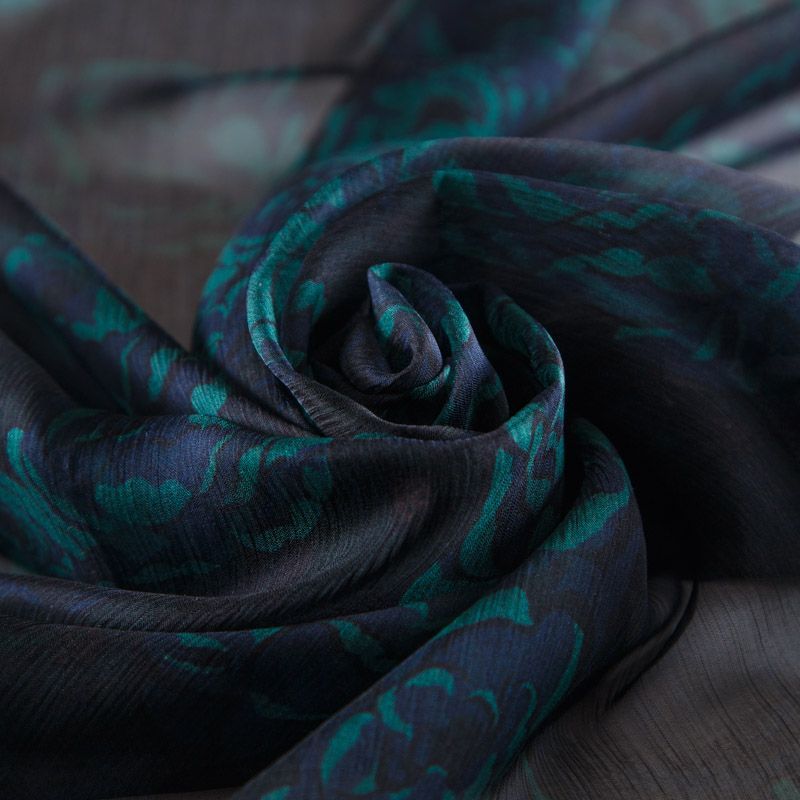 Шифон-жатка шелковый 068-12213 черный принтованный в Нарьян-Маре