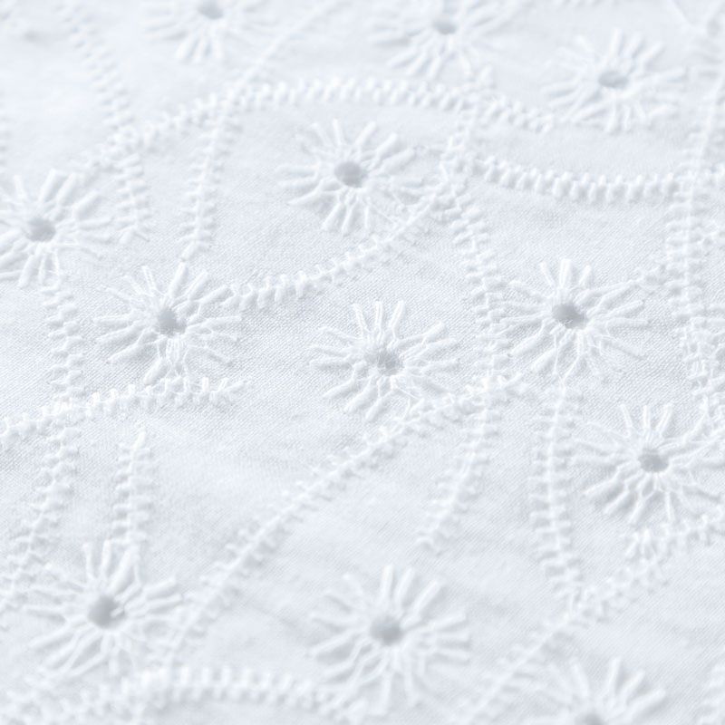 Итальянское шитье на белоснежной хлопковой основе с абстрактной, элегантной вышивкой, расположеннной по всему полотну. Ткань мягкая, легкая, пластичная, приятная на ощупь, просвечивает, потребуется подклад. Обе кромки ткани оформлены фигурными фестонами. Идеально подойдет для пошива рубашки, блузы, топа в воланами, туники, платья, сарафана, юбки, шорт.